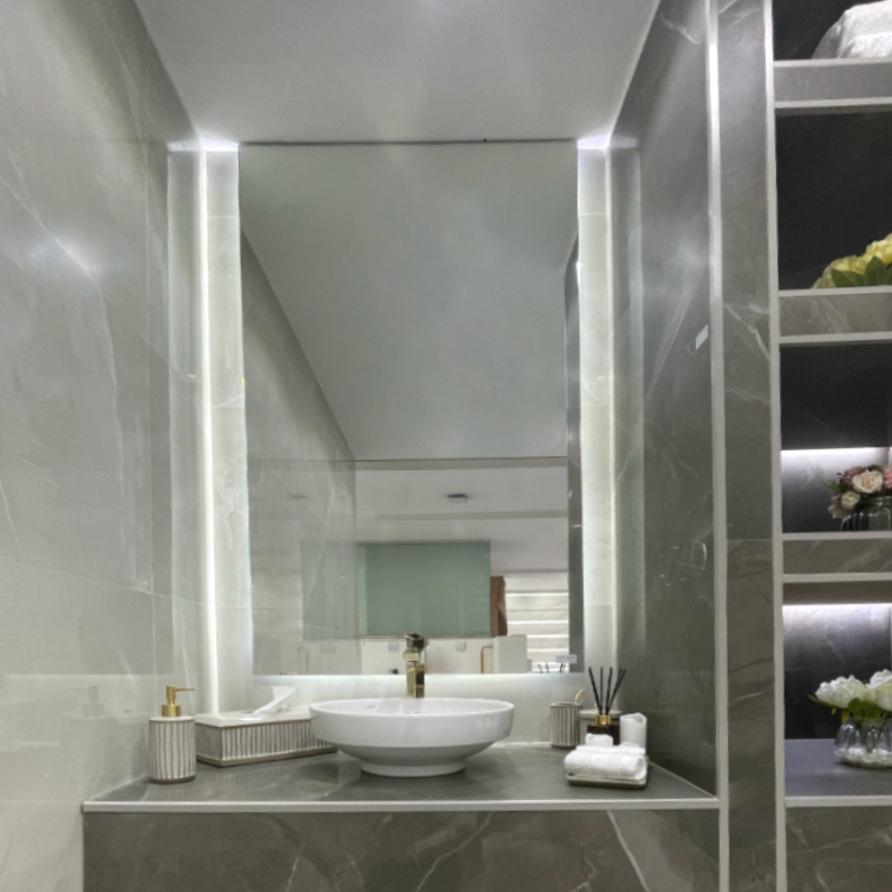 6 MM INDIAN MIRROR WITH E/POLISH AND THREE SIDE LED LIGHT BACKING ALUMINIUM FRAME