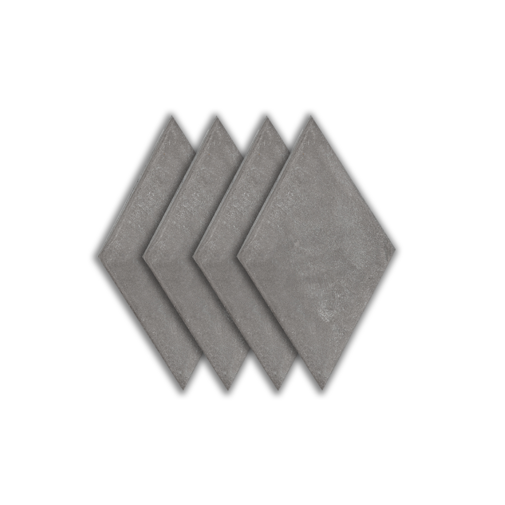 Chalk Grey Rmb Tile is charcoal-colored porcelain tile that is neutral in color yet rich in texture. Use this diamond shape to create a cube effect on walls and floors together with the rest of the neutral colors in the Chalk series or on its own for all-over color.