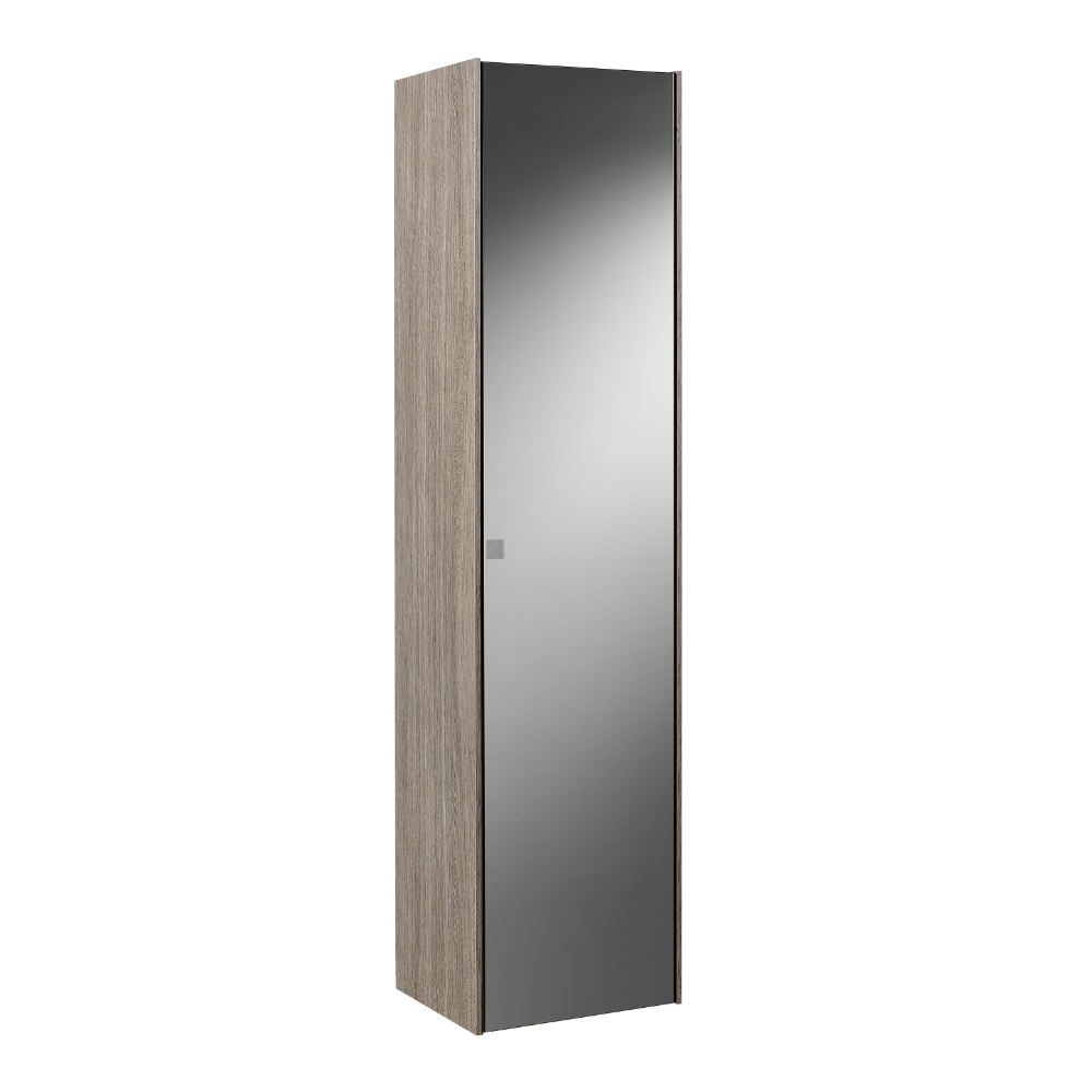 Inspira Column Unit with Mirror (Right Hand) with shelves, allowing additional room to store toiletries, complements the striking CITY OAK color and ingenious storage options.