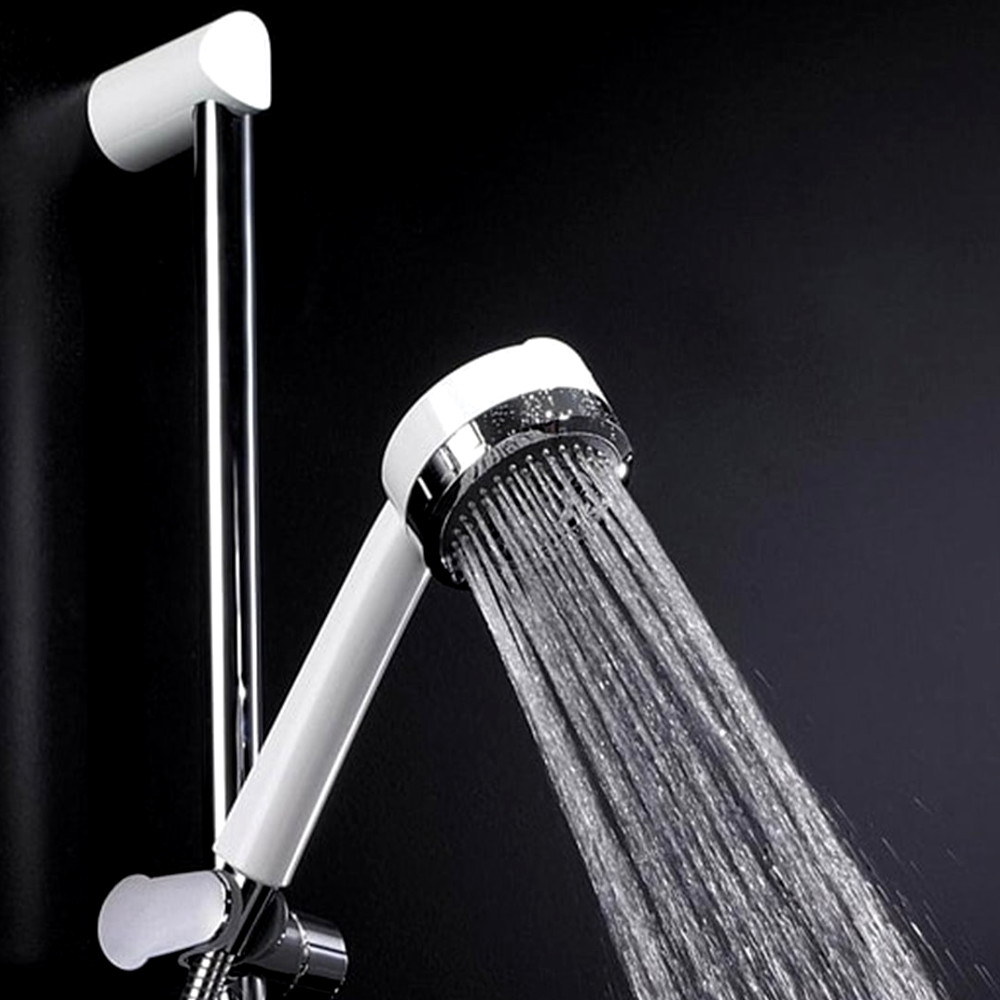 Experience the ultimate in shower luxury with the Kludi Zenta Shower Set in white. This elegant set includes a sleek hand shower and a convenient wall-mounted holder.