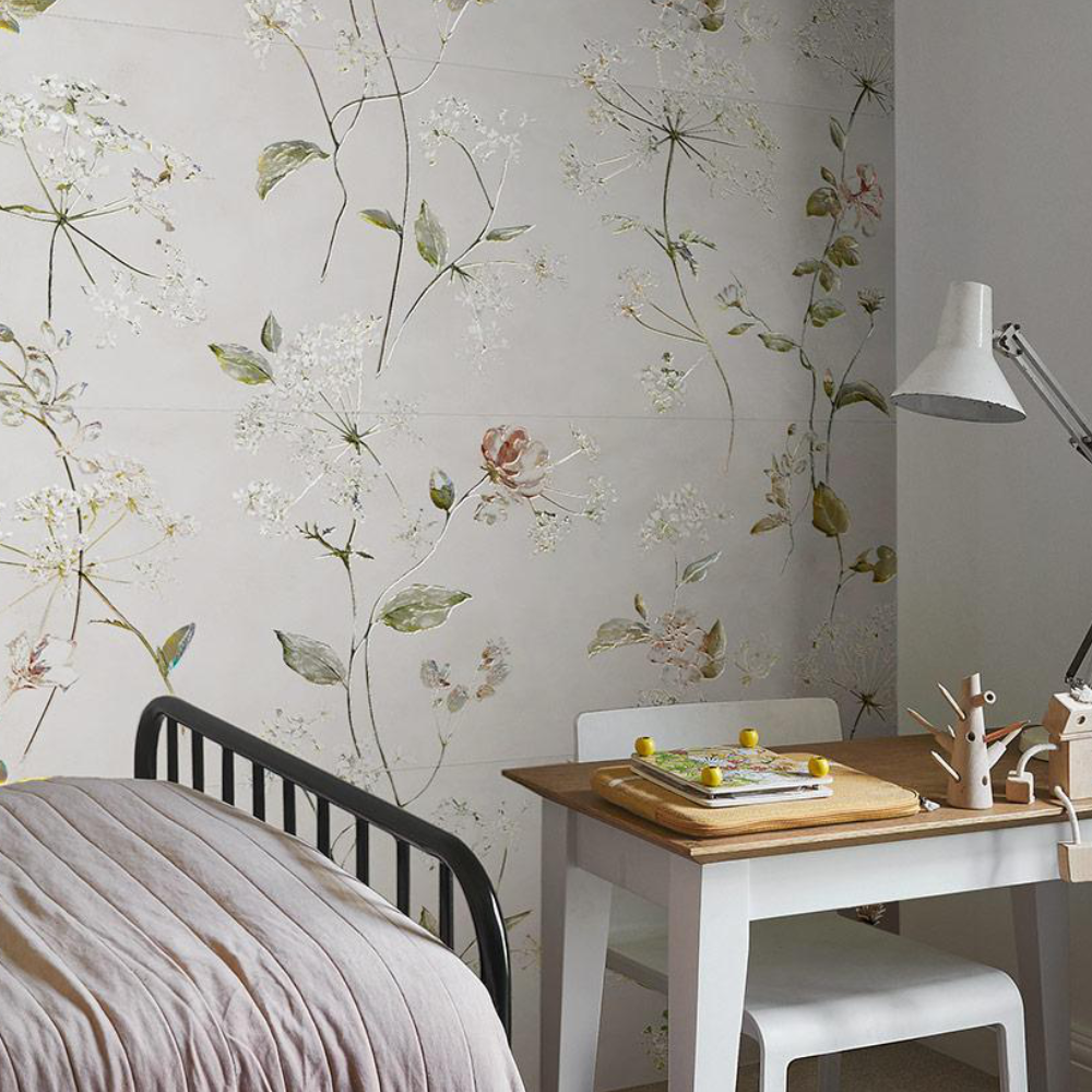 Marazzi White Deco Heyday Touch a multicolored floral tiles inspired by lush botanicals and tropical paradises, infusing your space with a lively, nature-inspired charm.