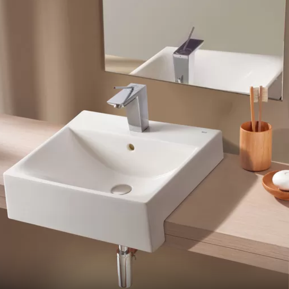 Roca Diverta Semi-Recessed Wash Basin a contemporary look, the Vibe range of ceramic and sanitary combined to create a luxurious look ideally suited to the more compact bathroom.