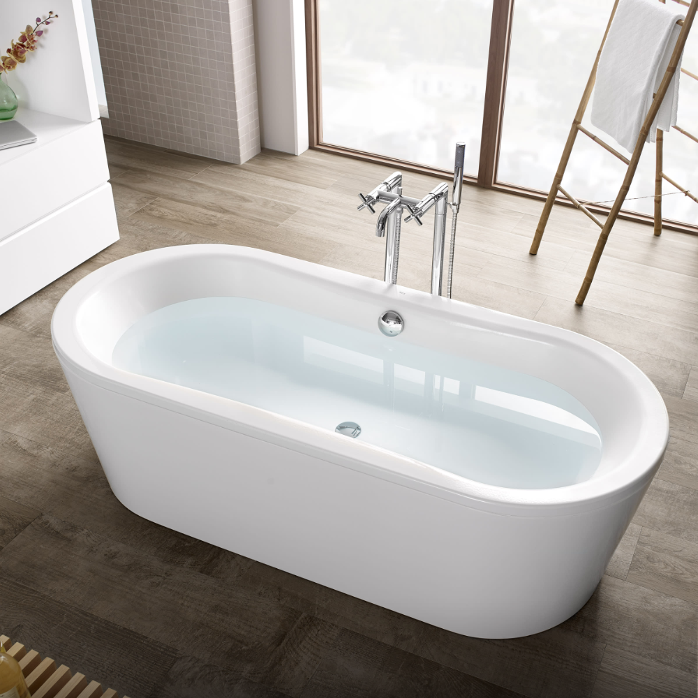 Roca Dou Plus Free-standing Oval Bathtub with anti slip base (3 MM STEEL SHEET) it takes a centre stage in the bathroom with an absolute minimum of effort. Cast into a pure, oval form, a freestanding piece that can be orientated and positioned just where you want it.