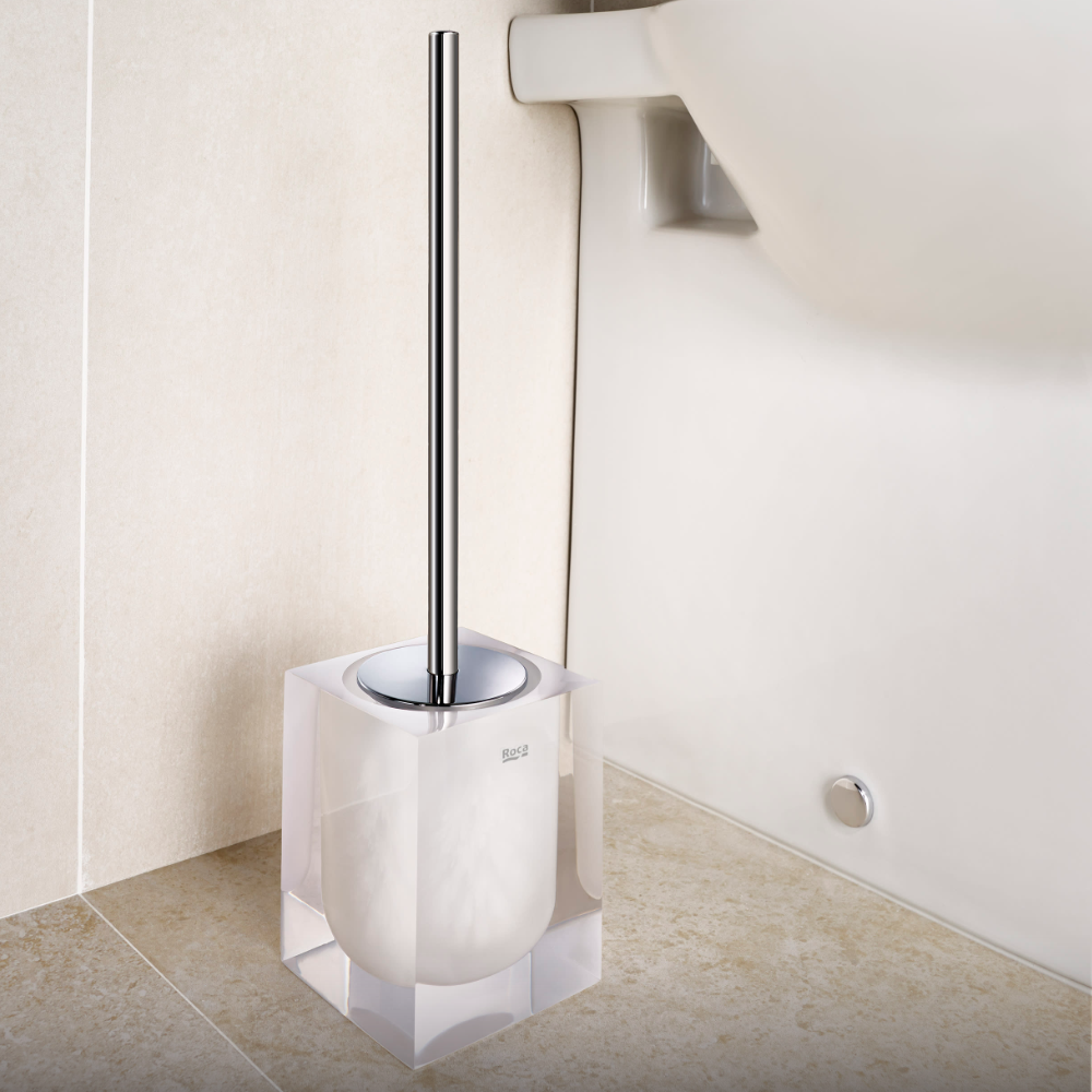 Roca Ice Floor-standing toilet Brush Holder made of a resin-based material that grant an optimal durability and resistance.