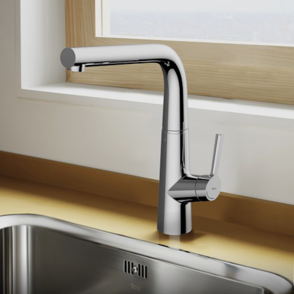 Roca Syria Sink Mixer with Swivel Spout with versatile shapes that blend elegance and utility provide the comfort of tried-and-true solutions.