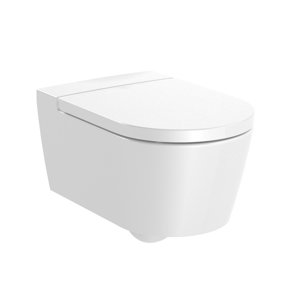 Round-Vitreous China Rimless Wall-hung WC with Horizontal Outlet with Soft-closing Supralit seat and cover for toilet and contemporary design and curved lines, uses a direct and simple approach that is perfect for the contemporary living space.