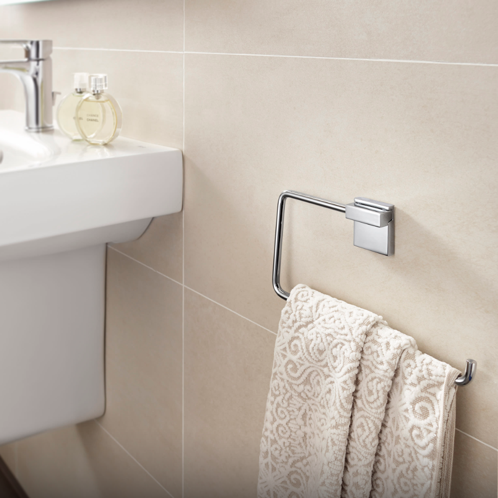 Rubik Towel Ring a neat and stylish solution for storing a hand towel or larger bath towel in any bathroom.