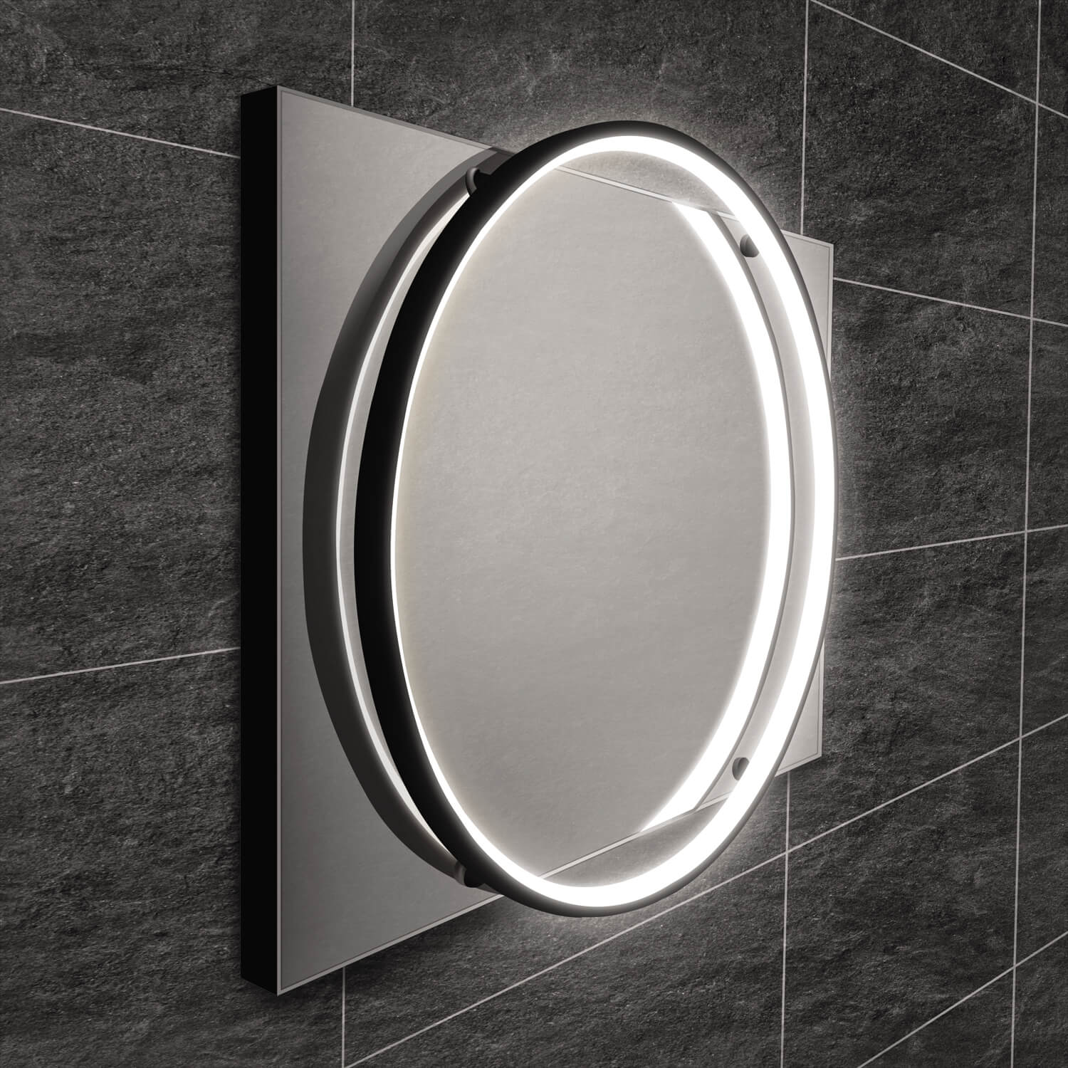 This Solas mirror features a circle of LED light, which is offset from the surface of the mirror, it provides optimal facial illumination.