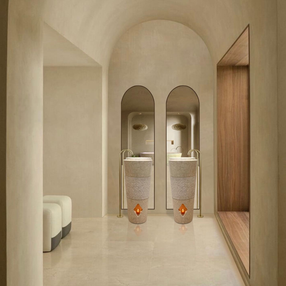 Song-Hai Freestanding Washbasin by Bati Bali – Handmade Artistry in Stone for Balanced Elegance.