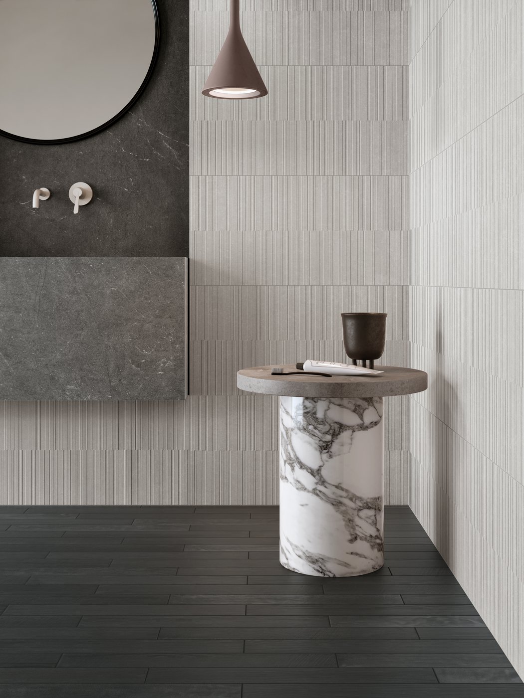 Create a design with delicate stone touch with line patterns from Marca Corana Soul Bay Pearl Grey Lines Tiles, Taking cues from different textures and colors, it allows you to bring a delicate elegance to everything from the living room to a well-appointed bathroom.