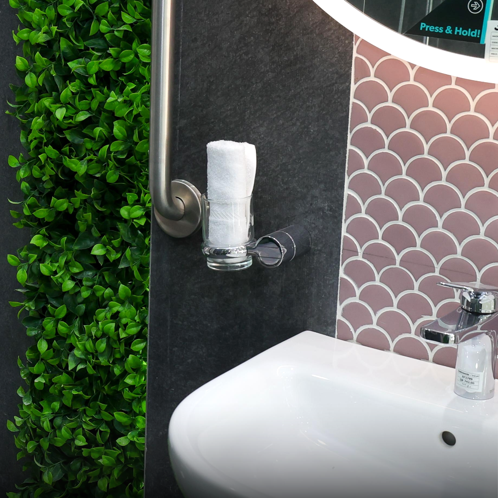 Toto Curio Tumbler Holder The chrome-plated holder provides the appropriate platform for placing a tumbler or toothbrush holder on the basin, which avoids basin-side clutter and maintains the space clean.