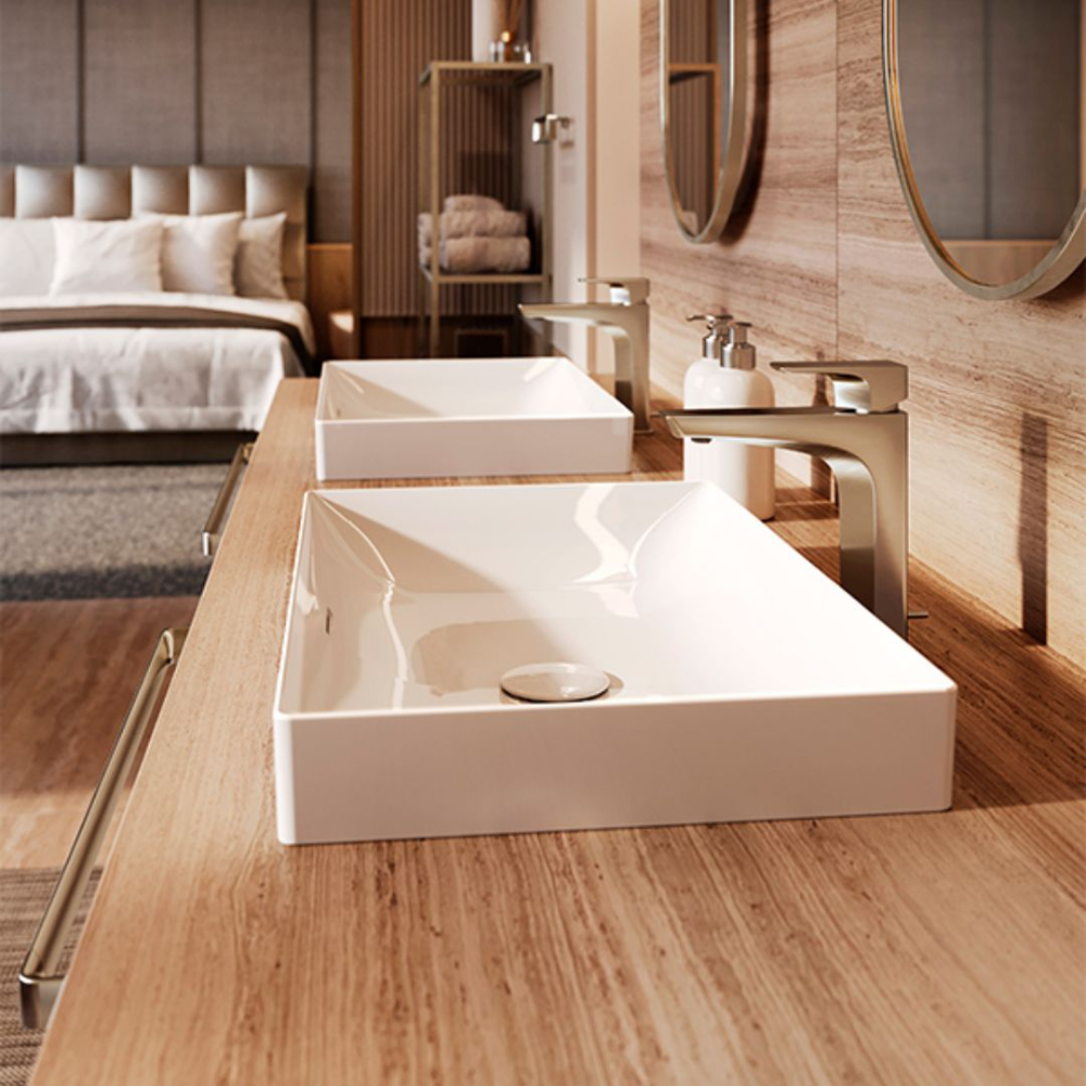 Toto Vessel Wash Basin: A sleek, stylish rectangular design that sits elegantly on the countertop.