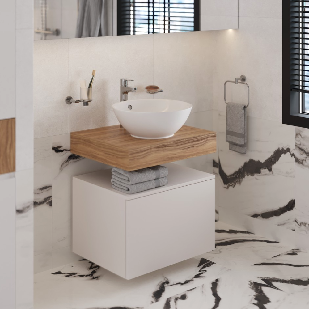 Embrace the Vitra Geo Countertop Basin, a sleek, space-saving solution for smaller bathrooms, combining style and functionality flawlessly.