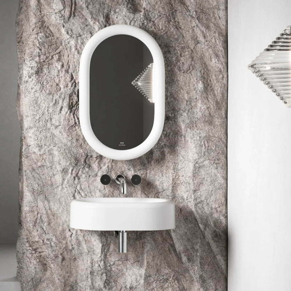 Add a touch of luxury to your bathroom with this Liquid Illuminated Mirror from Vitra, With Ceramic Frame,Wired to Room Lighting.