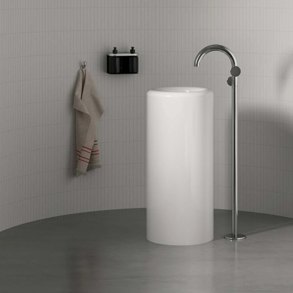 Introducing the Liquid Monoblock Washbasin from Vitra, where form meets function in the most elegant way. With its sleek and fluid design, this washbasin makes a striking statement in any bathroom.