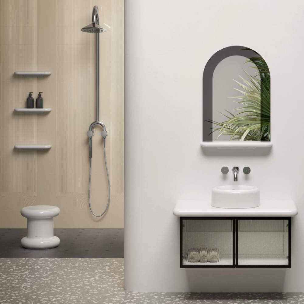 VitrA Liquid Ceramic Shelf a simple, yet efficient, accessory that doubles down as your storage space and decor item for your bathroom wall.