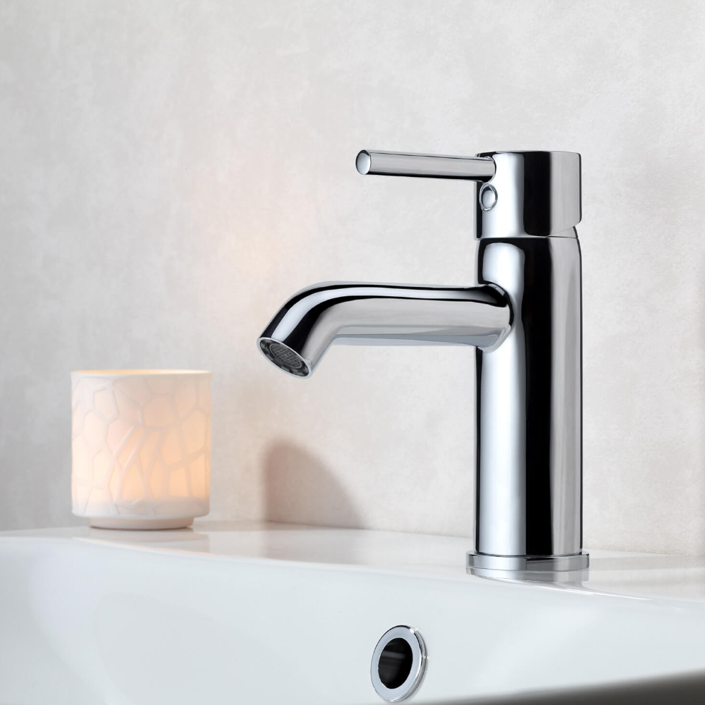 Vitra Minimax-S Basin Mixer without Pop Up with cylindrical design match to any bathroom with an integrated aerated spout for a massaging flow and spa-like feeling.