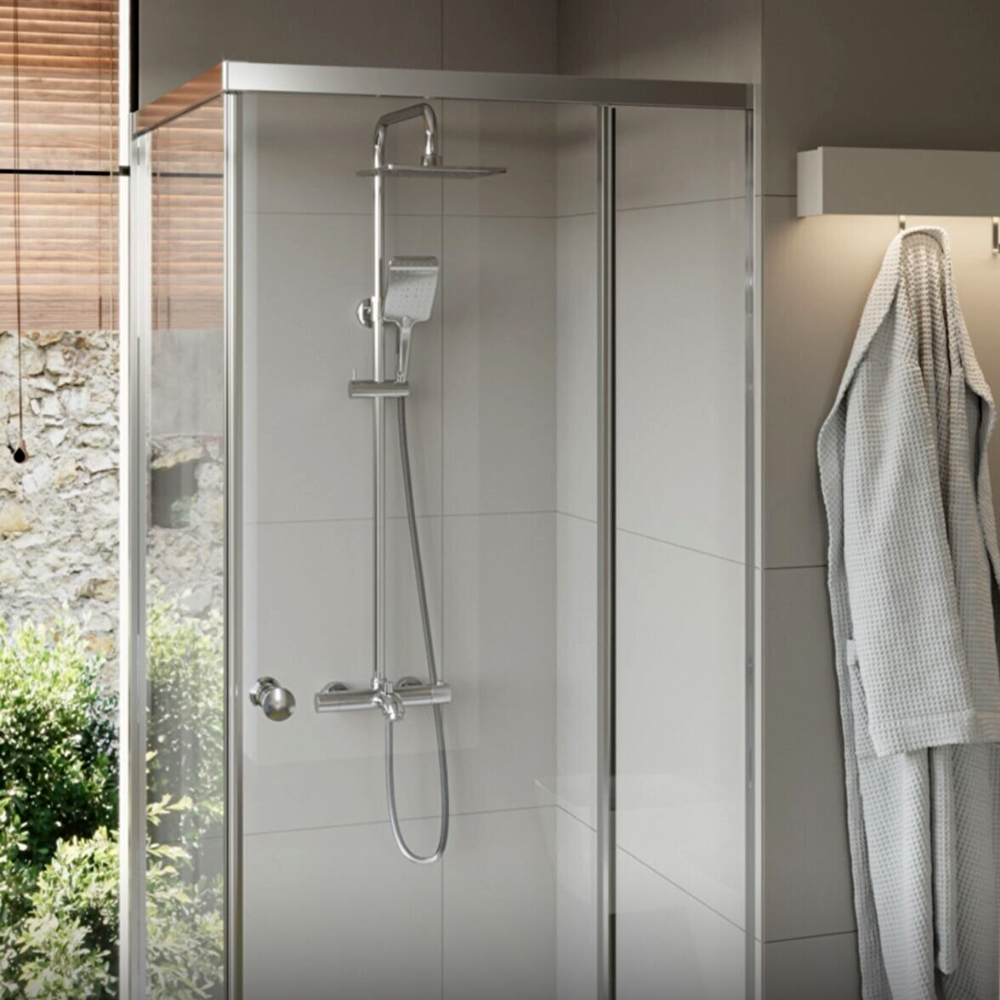 Vitra Shine Square Shower Set in modern and stylish square design with Ergonomic soap dispenser for convenient shower experience.